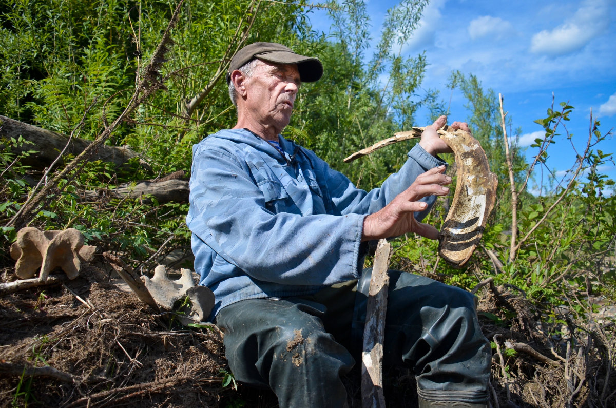 Охотник и краевед Константин Петров нашел на реке Кемь в Енисейском районе многочисленные останки мамонта.
