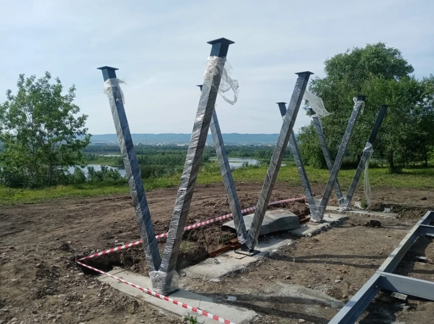 Уже видны очертания будущей конструкции, с которой красноярцы вскоре смогут любоваться на Енисей, остров Татышев и горы. Рабочие приступили к строительству.