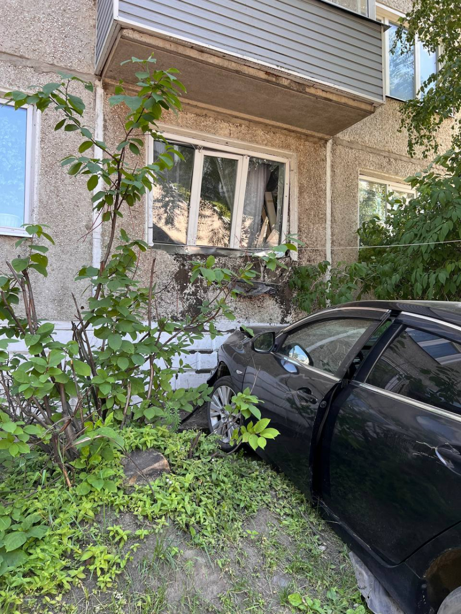 5 июля в дом врезалась Mazda. Подлетев на бордюре, авто влетело в окно первого этажа. Водитель погиб. Из-за аварии стена почти полностью обвалилась.