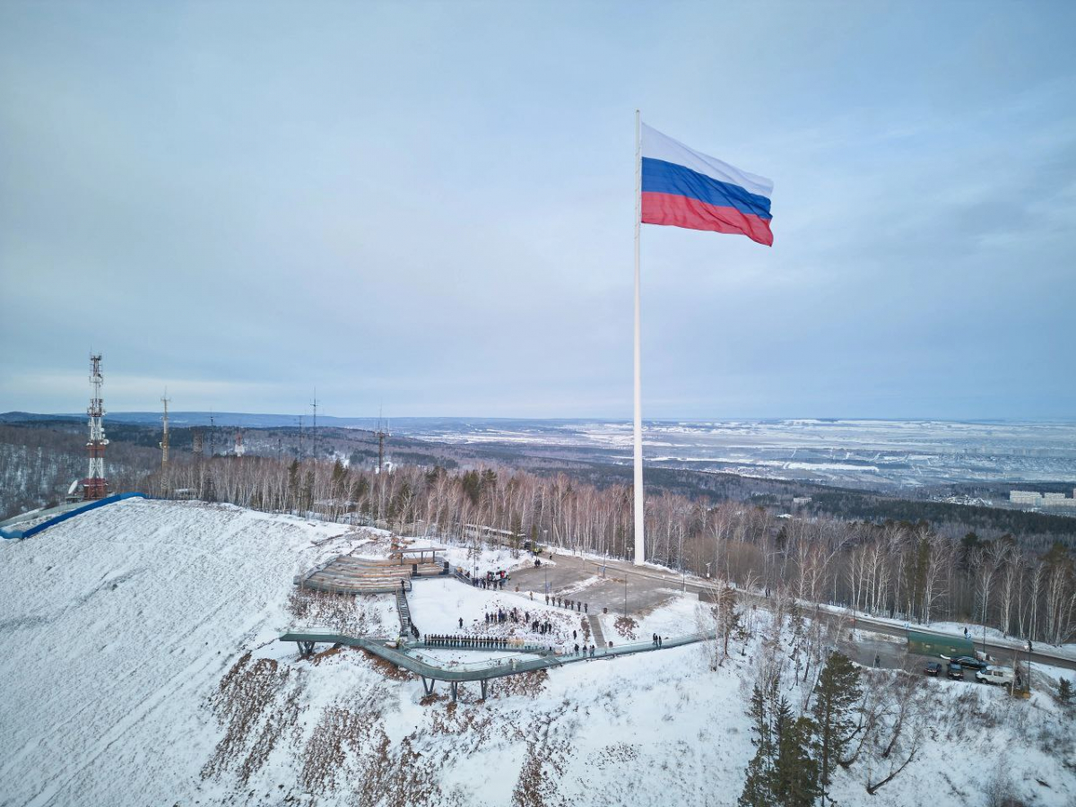 В Красноярске установили 100-метровый флагшток с флагом России