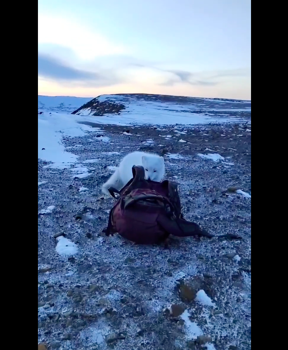 В Норильске песец пытался украсть у фотографа рюкзак. Видео с хищником опубликовала местная жительница во «Вконтакте».