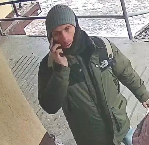 На вид мужчине 30-35 лет. Он был одет в зеленую куртку с черными вставками, серую шапку, голубые штаны и зеленые кроссовки.