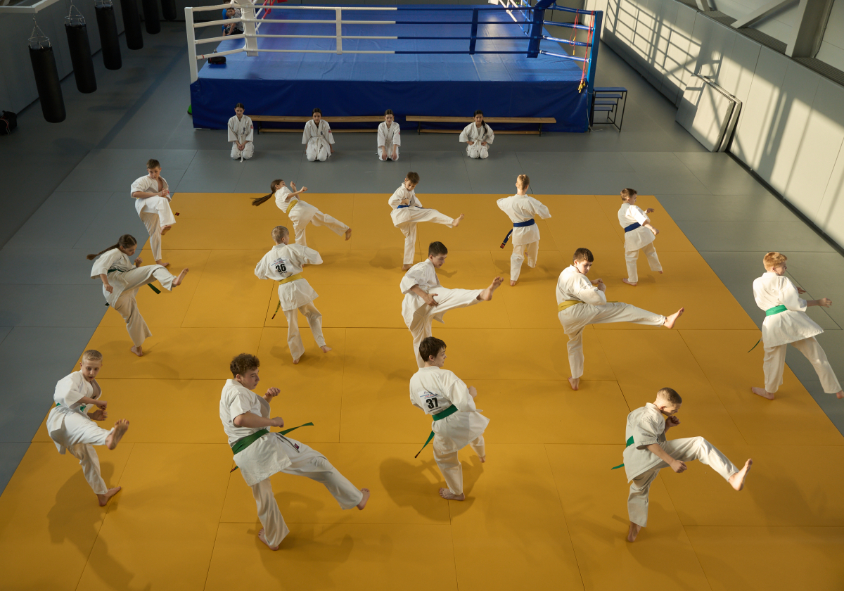 Центр большой: в правом и левом крыле на первом этаже можно заниматься самыми разными видами единоборств. В одном установлен современный, профессиональный боксёрский ринг и татами. На матах ребята упражняются в восточных единоборствах — дзюдо и карате. Также есть отдельная зона с подвесными грушами для отработки ударов. Во втором крыле — борцовские ковры и манекенами для бросков. Здесь меряются силами юные любители самбо и других видов борьбы.