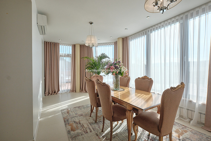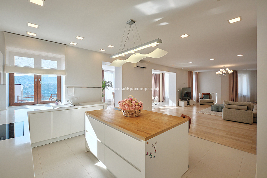 В поселке Горный на продажу выставили резиденцию. Она находится на закрытой территории, в окружении леса и с собственным ТСЖ. Вид из коттеджа выходит на Енисейский ландшафт.