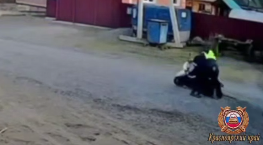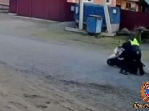 В Минусинске сотрудник ДПС налетел на пьяного гонщика на мопеде, пока тот пытался скрыться от него. Видео выложили в Госавтоинспекции по Красноярскому краю.