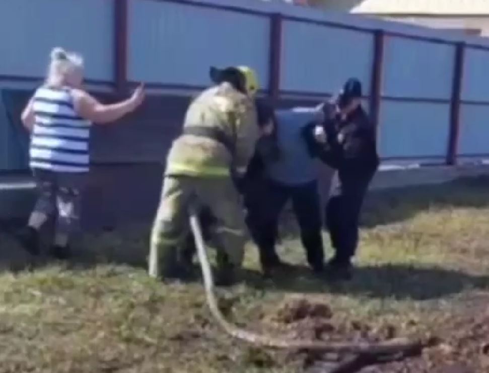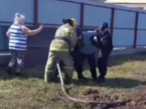 Но стоило им уехать, как хозяйки участка вновь начали сжигать траву. На место повторно приехали пожарные, но уже с дознавателем и полицейскими. Однако собственницы не собирались сдаваться: пока пенсионерка ссорилась с сотрудниками и снимала все на камеру, ее дочь вцепилась в пожарного, начала дергать рукав и не давала затушить огонь. Оттаскивать ее пришлось двум полицейским, но получилось это не с первого раза — женщина до последнего сопротивлялась.