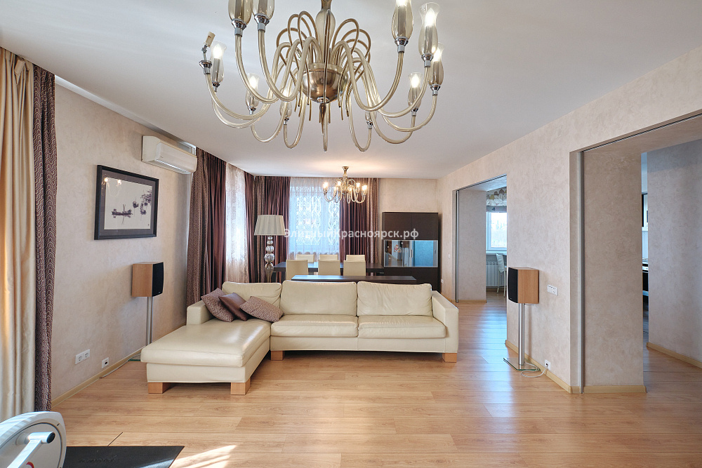 В описании указано, что из окон также видно Николаевскую сопку и Бобровый лог. Кроме того, в квартире два просторных этажа и два видовых балкона.