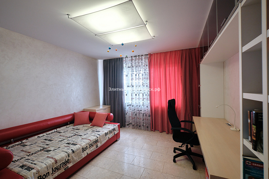 Жилье с площадью 214,4 квадратных метра, находится на девятом и десятом этаже дома. В нем семь комнат: четыре спальни, две гардеробные и кабинет. В гостинной, которая объединена с кухней — висит шикарная люстра. Также в квартире есть три туалета, среди которых один — для гостей: два санузла с джакузи, третий — с душевой кабиной. Помимо этого, в стоимость входит одно место в подземном паркинге.