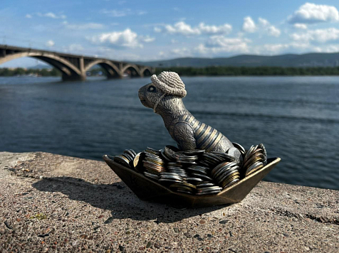 Памятник, расположенный на берегу Енисея, сразу полюбился горожанам и гостям города,. Ему подкладывают монетки с надежой на исполгнение желаний. А теперь горожане заботятся об его «сезонном гардеробе».