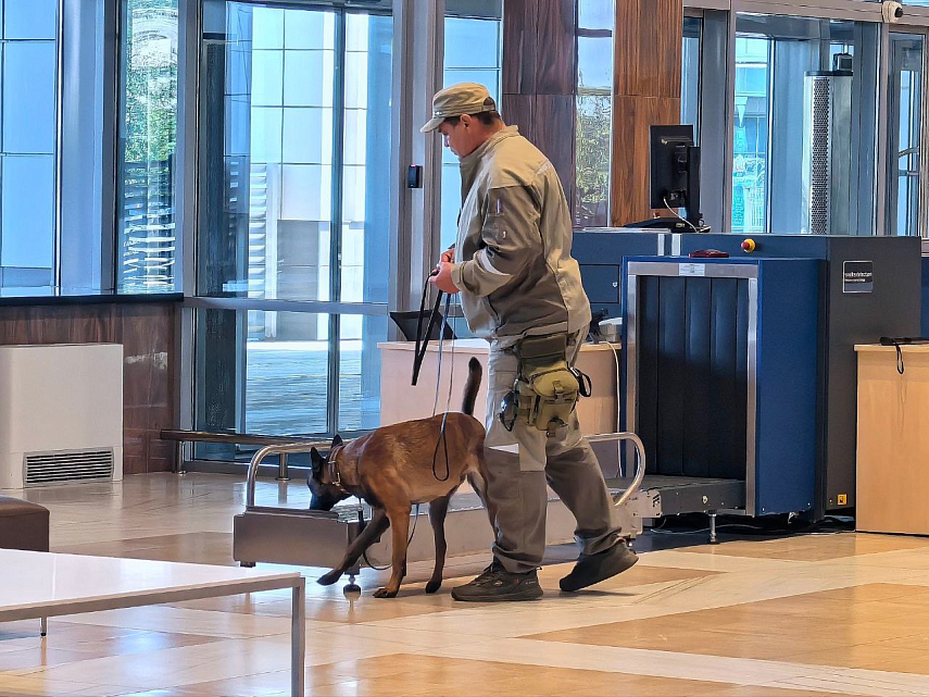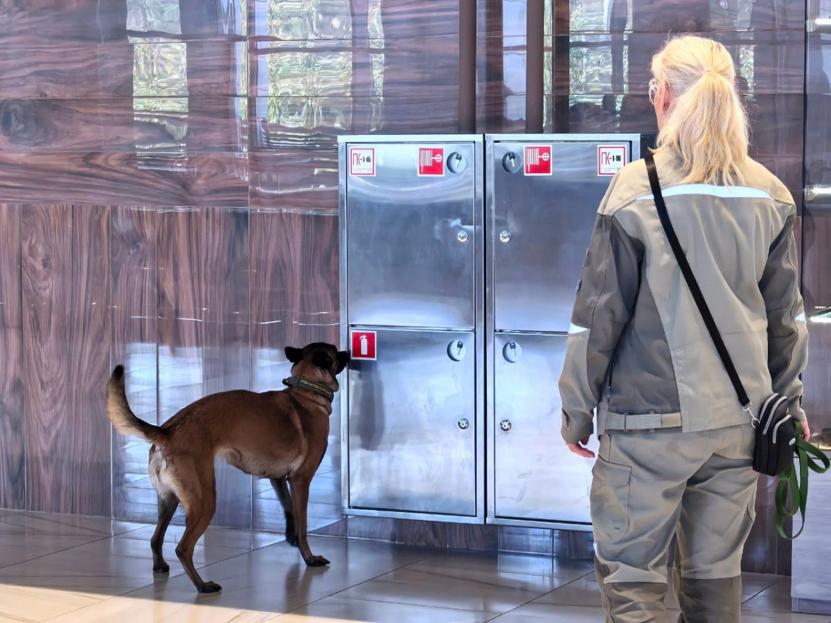 Такое подразделение в воздушной гавани заработало впервые. На аттестации собаки проходили испытания на поиск потенциальных угроз: обследовали терминалы, зону выдачи багажа и привокзальную площадь.