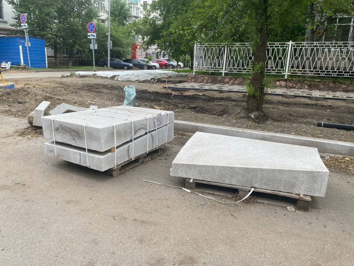 К монтажу плит пока не приступили, но первые блоки уже привезли на улицу Дзержинского, где сейчас идет благоустройство, и как только закончат с укладкой брусчатки, примутся за монтаж пандусов.