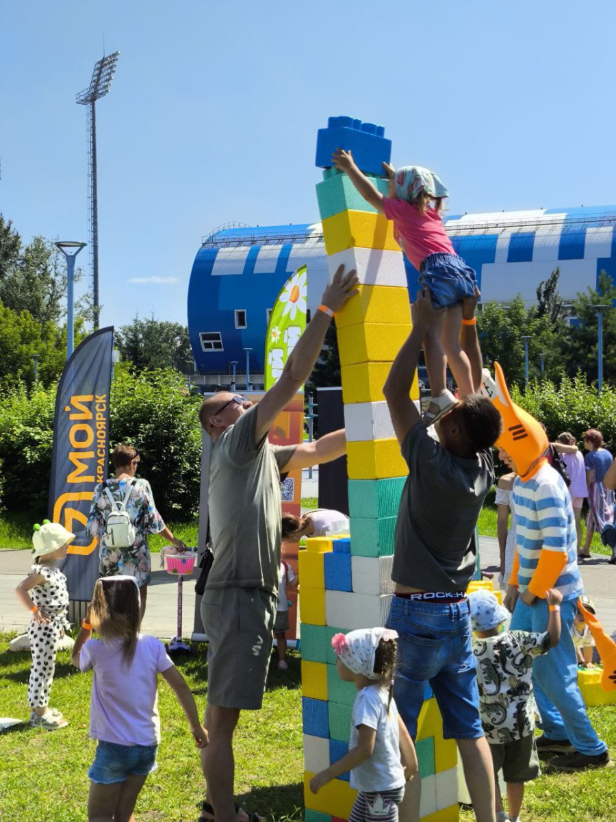 В Красноярске стартовал масштабный семейный праздник в честь Дня семьи, любви и верности. Культурное пространство «Каменка» собрало сотни гостей, где 7 канал Красноярск представил свою уникальную интерактивную площадку с гигантскими кубиками LEGO.