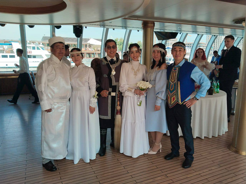 Церемонии начались с прогулки на яхтах по Москве-реке, после чего пары в сопровождении гостей прошли по набережной к Национальному центру «Россия», где сотрудники ЗАГСа зарегистрировали их браки.