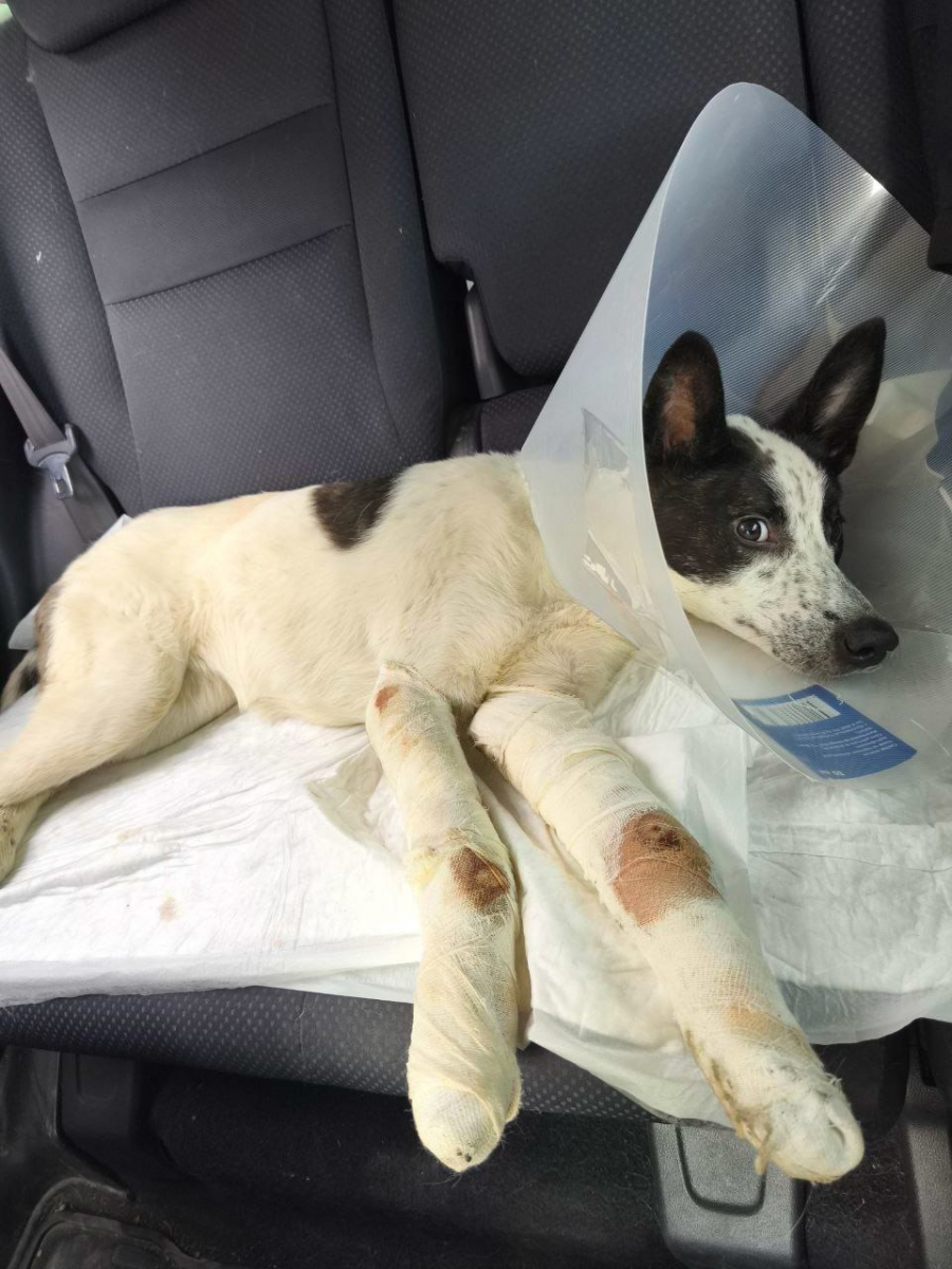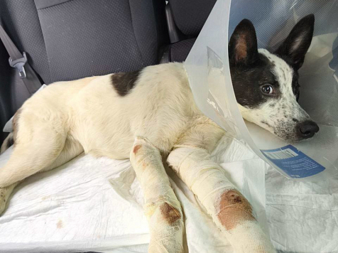 Животное обнаружили соседи. Они подобрали малыша и отвезли его в ветклинику. Оказалось, что у щенка сломаны все лапы. Ему потребовалась длительная реабилитация и лечение. Он долго находился в состоянии, которое характеризуют как «стабильно тяжелое».