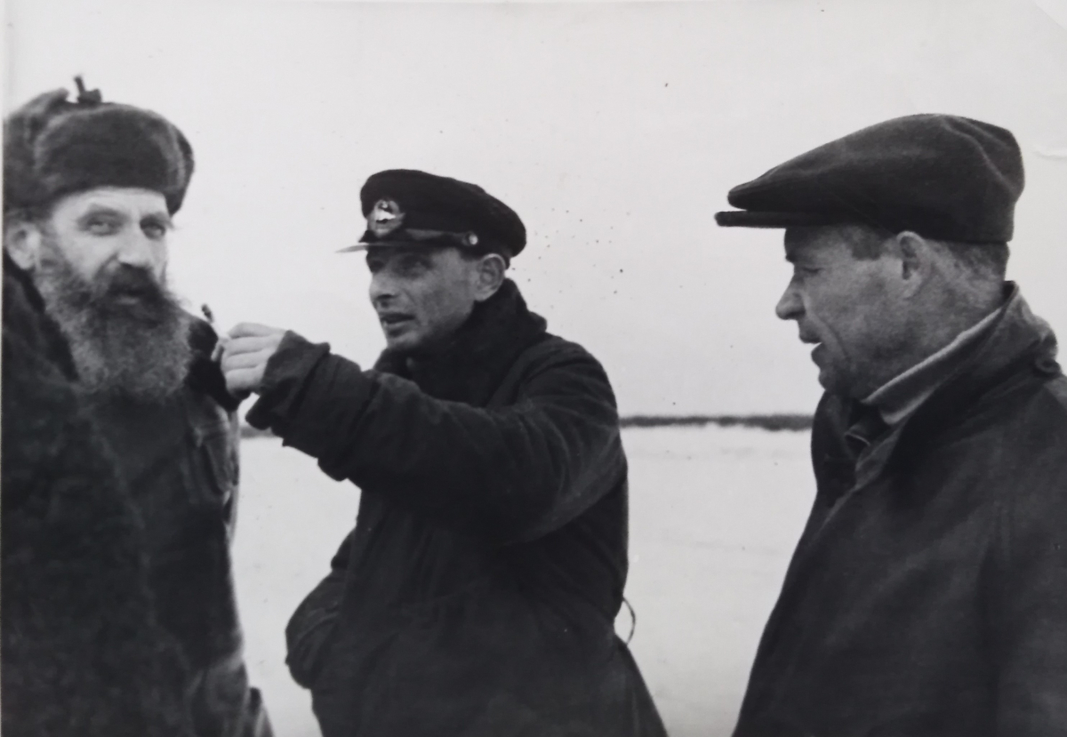 На фото Шмидт, Шевелев, Молоков 1937 годИ он продолжил летать на Север. Совершил рекордные арктические перелёты, участвовал в высадке на Северный полюс первой в мире полярной станции и просто работал пилотом на Енисейской авиалинии.