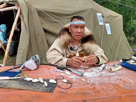 В его руках — амулеты из моржового зуба, резьба по рогу северного оленя и знание, переданное поколениями.