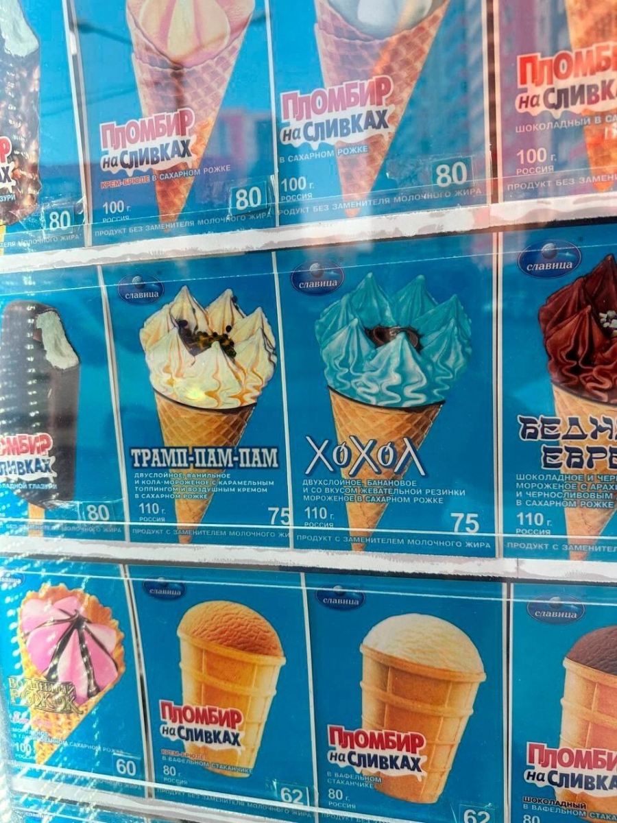Коллеги из издания «Проспект Мира» не поленились и обошли несколько ларьков фирмы «Славица» в поисках «Трамп-пам-пама». И не нашли такого наименования на витринах. Продавцы рассказали, что подобного в Красноярск не завозили, а в самой компании-производителе на запрос журналистов ответили, что фото с «новым» мороженым — фейк.
