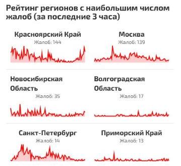 На сбой в работе сотовых операторов жалуются жители Москвы, Санкт-Петербурга, Удмуртии, Красноярского, Краснодарского и Приморского края, Новосибирской, Волгоградской, Омской, Ростовской области.