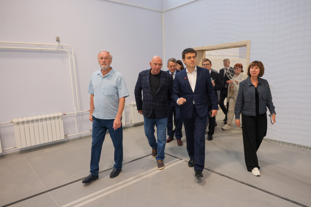 Главе регионе показали кабинеты, которые сейчас оснащают современным оборудованием: интерактивными досками, проекторами, ноутбуками, принтерами – а также библиотеку, актовый и обеденные залы, пищеблок. Отдельное внимание уделили спортивной инфраструктуре: в корпусе есть большой и малый спортивные залы, тренажерный и фитнес-залы. На пришкольной территории оборудована большая физкультурно-спортивная зона с футбольным полем, универсальной игровой локацией, площадкой для занятий легкой атлетикой, гимнастикой, беговыми дорожками, хоккейной коробкой.