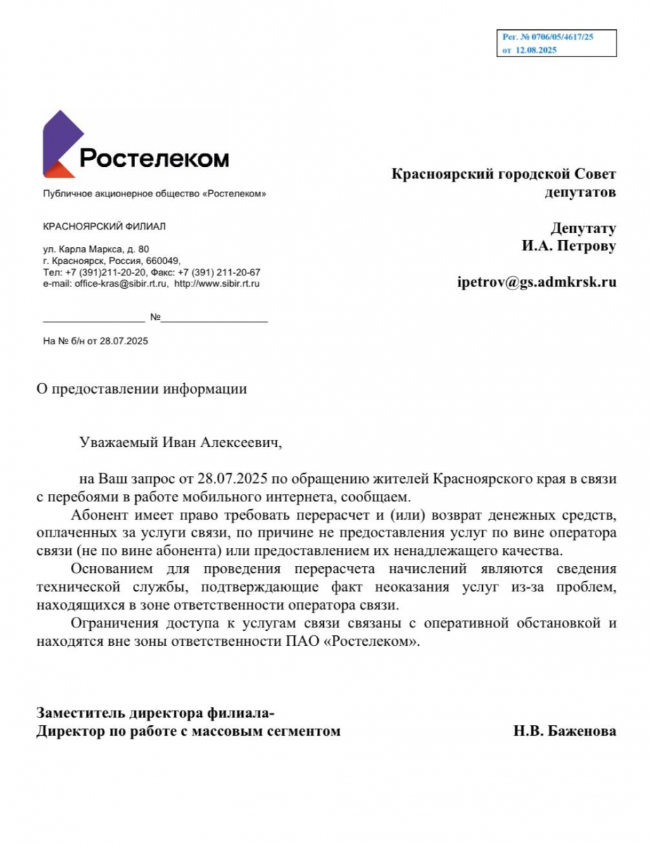 Со дня отключения мобильного интернета в Красноярске прошёл уже месяц. За это время более 50-ти красноярских пользователей обратились с запросами к депутату Горсовета Красноярска Ивану Петрову.