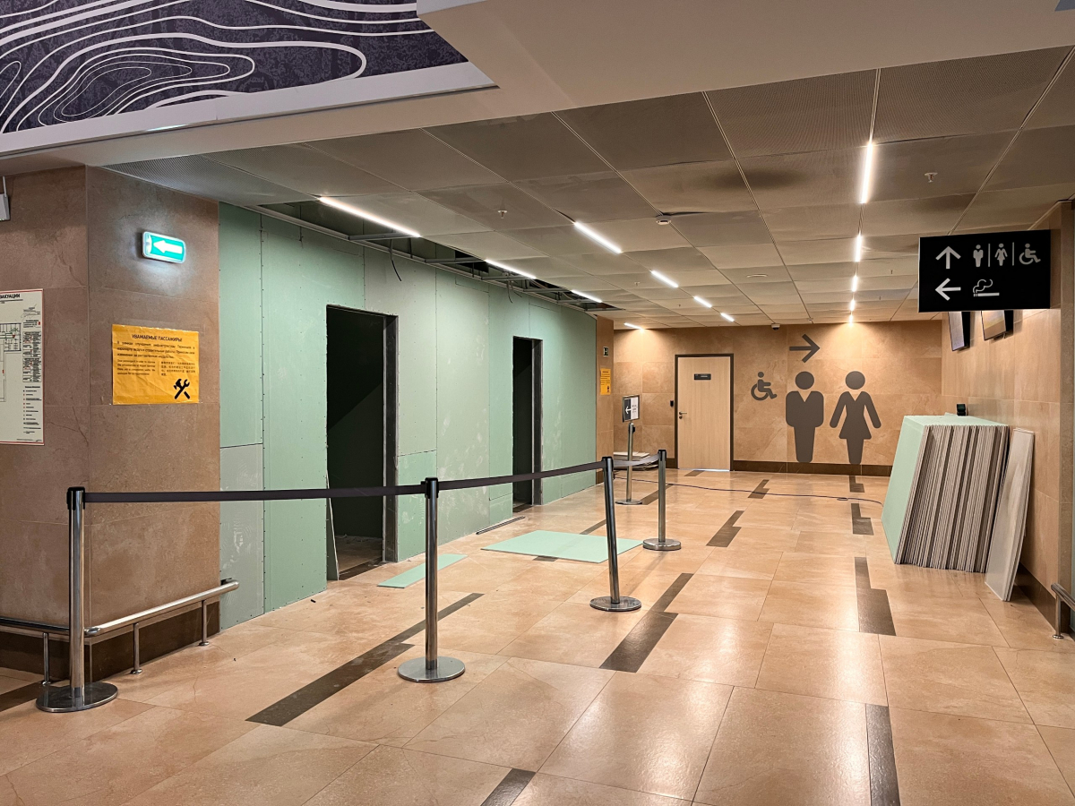 Из интересного и объясняющего, почему нельзя было открыть новую комнату и только после этого закрыть старую. Дело в том, что её монтируют вокруг прежней камеры для курения. Это будет полноценное помещение с двумя входами. Пассажиров до последнего не хотели тревожить и потому работы проводили, никого не выгоняя из курилки. Но сегодня настал момент, когда необходимо через новые проемы вынести прежнюю камеру.