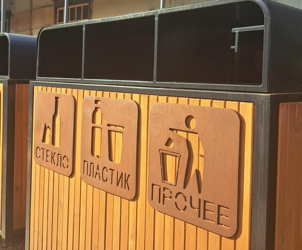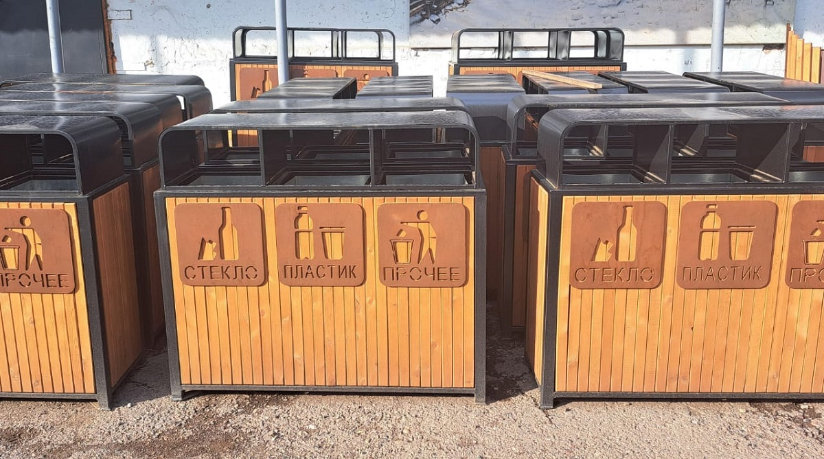 Урны изготовили из металлического каркаса с деревянными щитами из сосны. Изделия вырезали на специальных станках. После их отшлифовали и покрыли маслом. За сентябрь планируют поставить 30 штук.