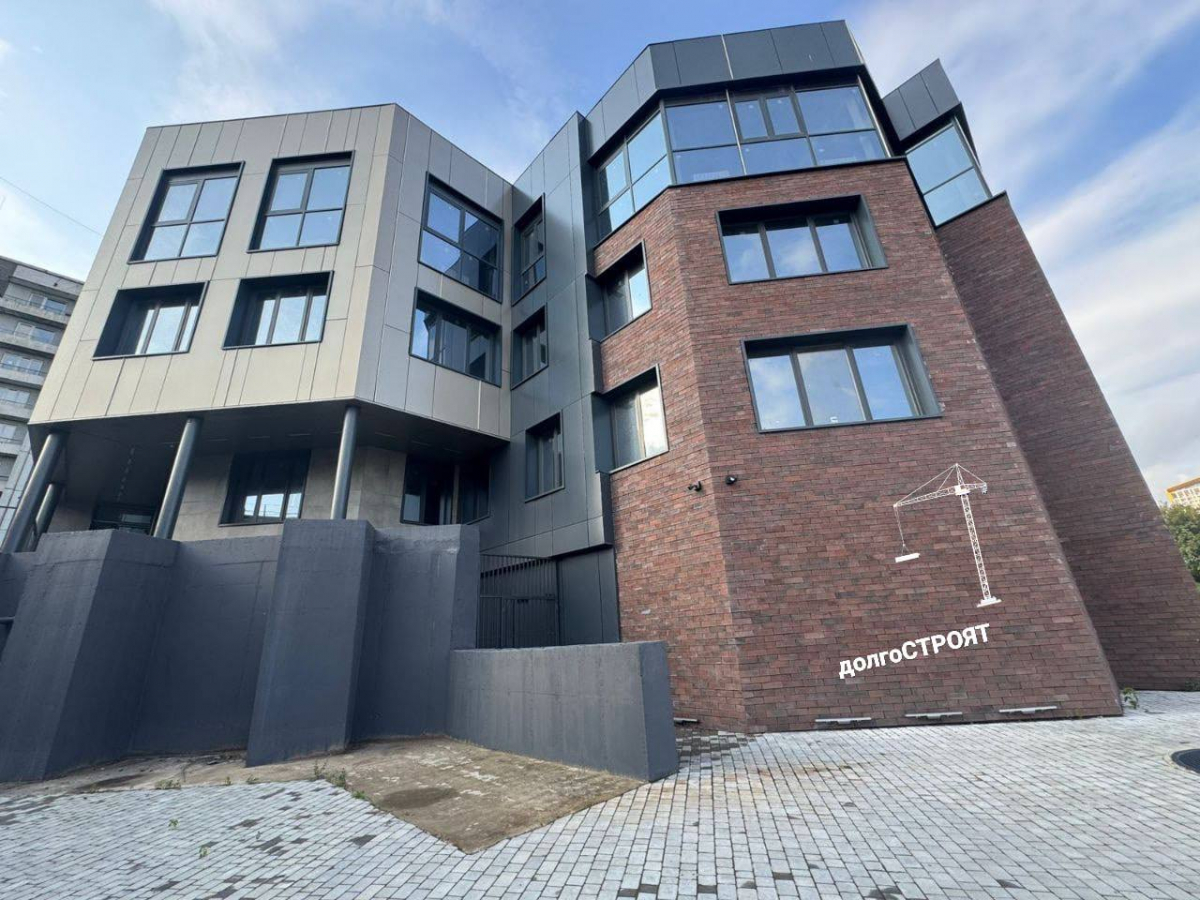 Общая площадь четырехэтажного комплекса, включая подземный уровень, составляет около 2800 квадратных метров. Внутренние помещения находятся на этапе черновой отделки.