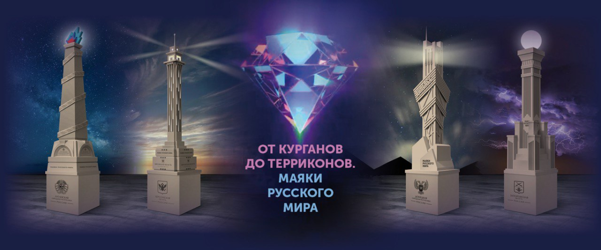 Маяк Русского мира для Донецкой Народной Республики (стихия: земля (уголь) изготовлен в форме сооружения над угольной шахтой, вершину которого венчают крепостные зубцы (напоминающие о неприступности Донецка). Живописная часть представлена картиной «Саур-Могила» продолжателя традиции русской реалистической школы живописи Алексея Крюкова. Этот курган в Горловском районе Донецкой области стал символом настоящего мужества советских воинов во время Великой Отечественной войны и ополченцев в 2014 году.