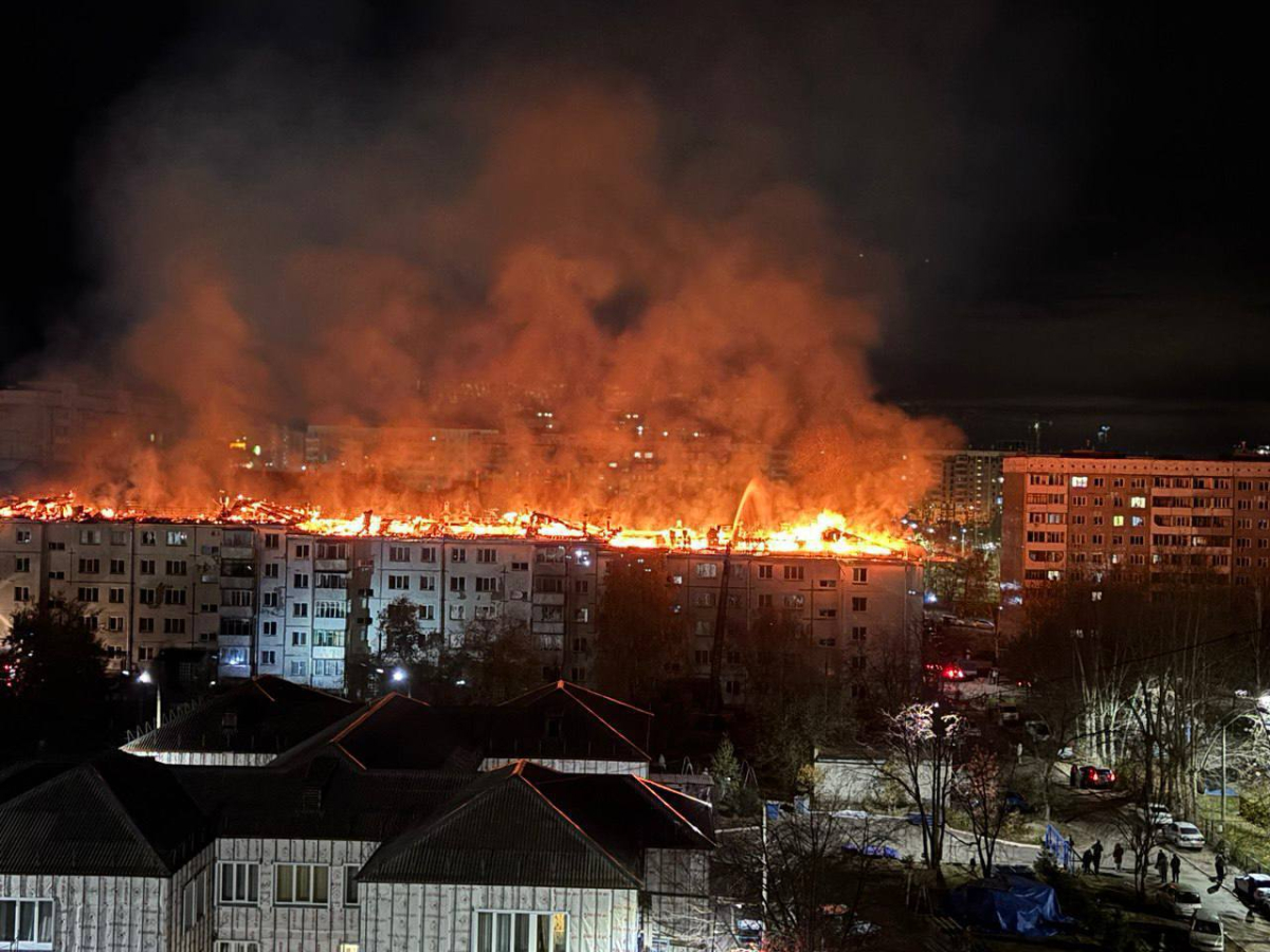 Накануне ночью в пятиэтажном доме на улице Пятилетки вспыхнула квартира на верхнем этаже, огонь быстро перекинулся на крышу, охватив площадь около 2 тысяч квадратных метров. Жители оперативно эвакуировались, несколько человек получили травмы и были доставлены в больницу. Остальных отправили в пункт временного размещения.