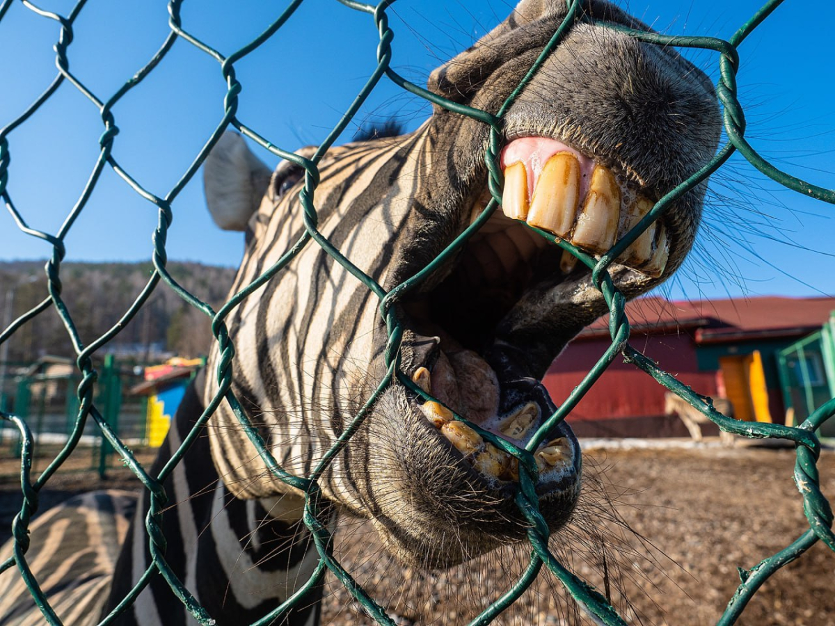 Посетители красноярского зоопарка отметили, что зебра в вольере очень странно себя ведёт и всё время грызёт забор. Специалисты парка флоры и фауны пояснили – так папа защищает свою семью от нападений.