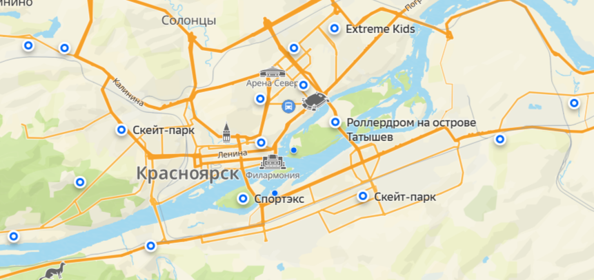 Отметим, что сейчас в Красноярске есть 32 места, где можно покататься на скейте, их отметили на карте.