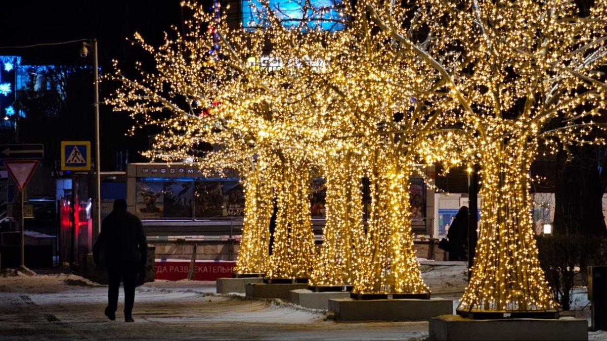 В Красноярске заработали светящиеся деревья, сообщили в мэрии.