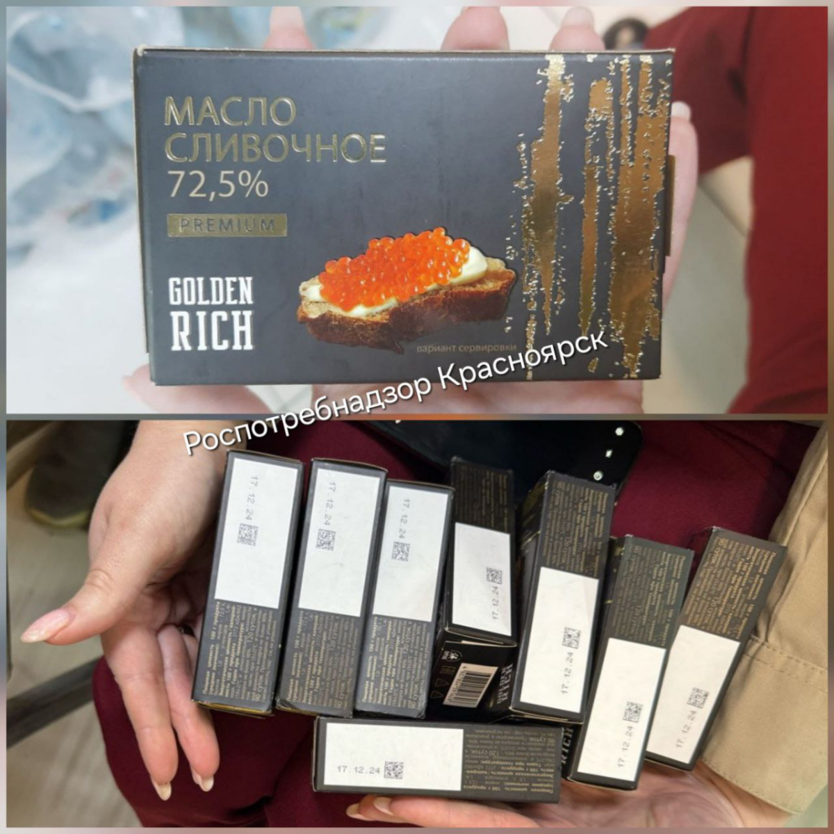 Роспотребнадзор осмотрел витрины внутри и обнаружил восемь пачек сливочного масла с истекшим сроком годности.