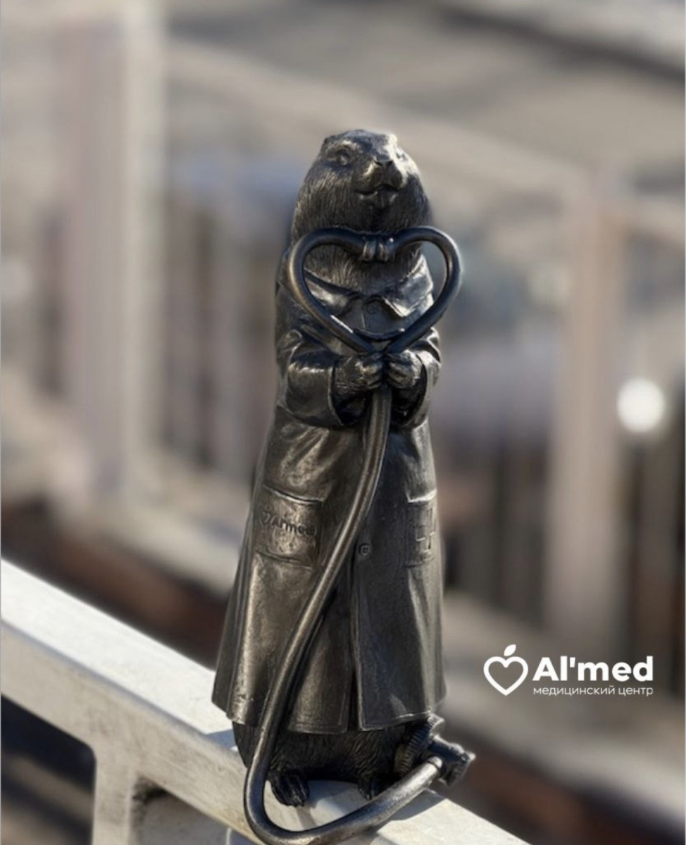 В Красноярске продолжается необычное «заселение» городских улиц сусликами — на этот раз у медицинского центра «Альмед» появился новый необычный обитатель. Это не просто фигурка грызуна, а настоящий «медик» в миниатюре: суслик с фонендоскопом в лапках занял почетное место на перилах у входа в клинику. По местным поверьям, если потереть его стетоскоп, можно привлечь здоровье и удачу.