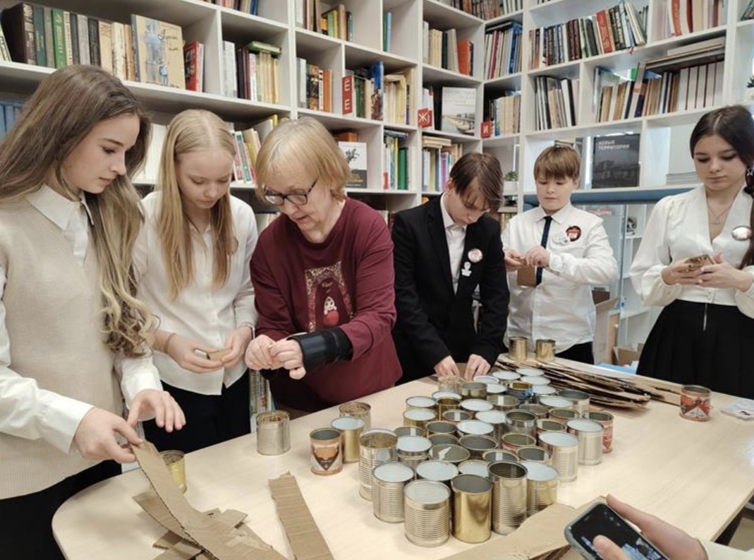 Сегодня ученики сосредоточенно трудились в школьной библиотеке. Старшеклассники скручивали картон в «улитки», помещали их в жестяные банки и заливали горячим парафином. Так рождаются жизненно необходимые окопные свечи, способные осветить блиндаж, согреть руки бойцов.