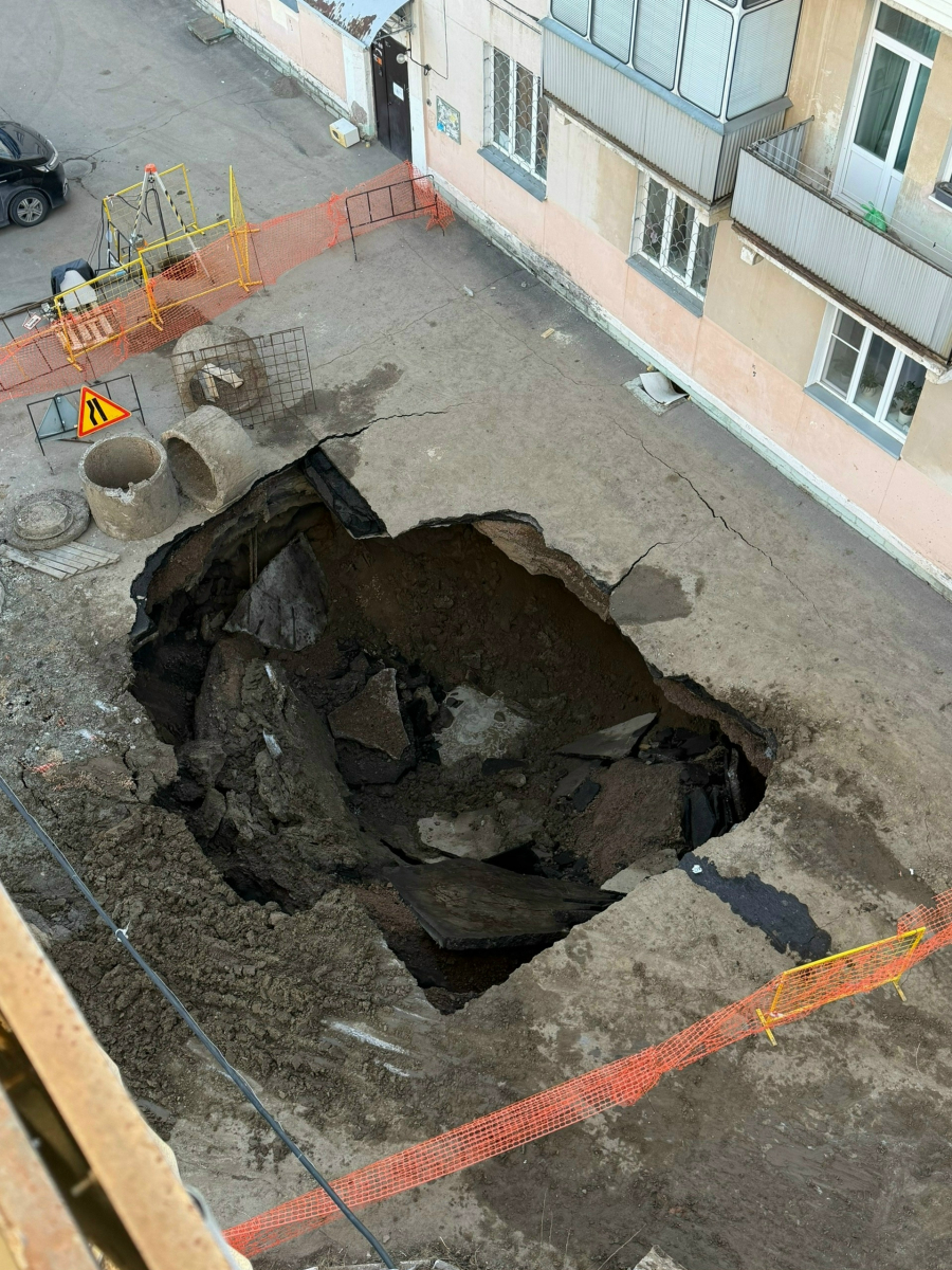 В Железногорске на улице Школьная случился крупный провал асфальта прямо у стены многоквартирного дома. Многометровая яма угрожает фундаменту. Она образовалась из-за подмыва жилищно-коммунальной инфраструктуры.