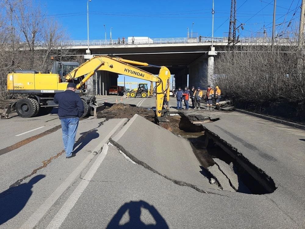 Восстановительные работы у «КрасКом» идут с осложнениями, поскольку падение дорожных плит разрушила фрагмент коллектора, в который поступает вода со всего Свердловского, большей части Кировского и частично Ленинского районов.
