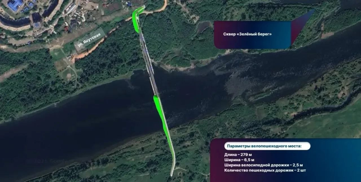 Сооружение длиной 279 метров станет новым транспортным звеном между Иннокентьевским, Зеленой рощей и островом Татышев.