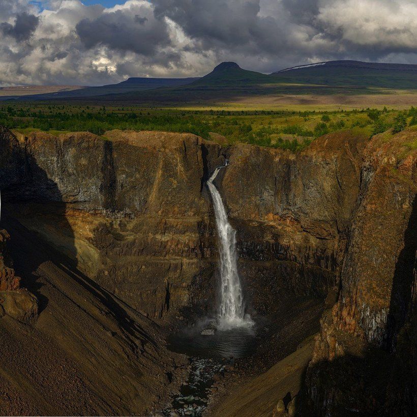 Чтобы увидеть водопад, придется лететь вертолетом около 500 километров или доехать до поселка Степановка Ирбейского района. Дальше на ГАЗ-66 или внедорожнике до базы отдыха, а потом — только пешком.