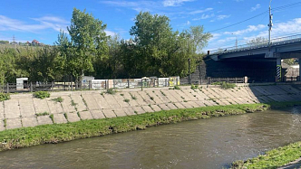 В центре Красноярска на берегу Качи строят неизвестную деревянную баню