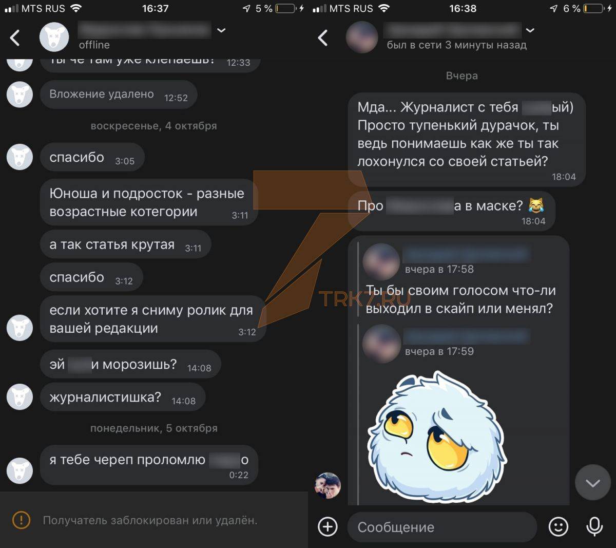 Тем временем нашему корреспонденту начали поступать угрозы от этого же подростка в социальной сети. Атака в интернете идет и от возможных знакомых юноши. К слову, сейчас аккаунт мальчика заблокировали.