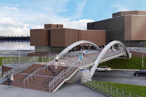 Пешеходный мост между БКЗ и Музейным центром на набережной возводят за счёт городского бюджета. Длина перехода составит 71,8 метра, ширина 6 метров.